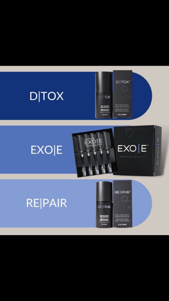 With the purchase of a Scarlet RF microneedling treatment, you also receive our plant based serums! DITOX is used 5 days prior to treatment to prep the skin, EXO-E is used on the day of treatment to improve collagen, elastin, and hyaluronic acid production, and REPAIR is used 5 days post treatment to heal and hydrate the skin, and neutralize any redness.