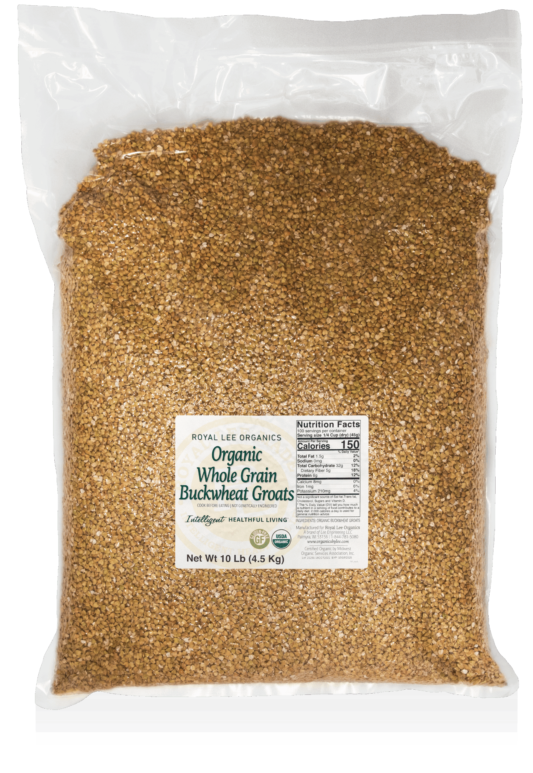 Organic, gluten free, hulled Buckwheat groats are the seeds of the buckwheat plant, a plant related to rhubarb. With its dark, toasty and nutty flavor, buckwheat is a tasty, gluten-free flour alternative for pancakes. It’s also delicious cooked as a dinner side dish or salad ingredient. It is a good source of dietary fiber (4.5g per serving) and its protein has a unique amino acid composition.