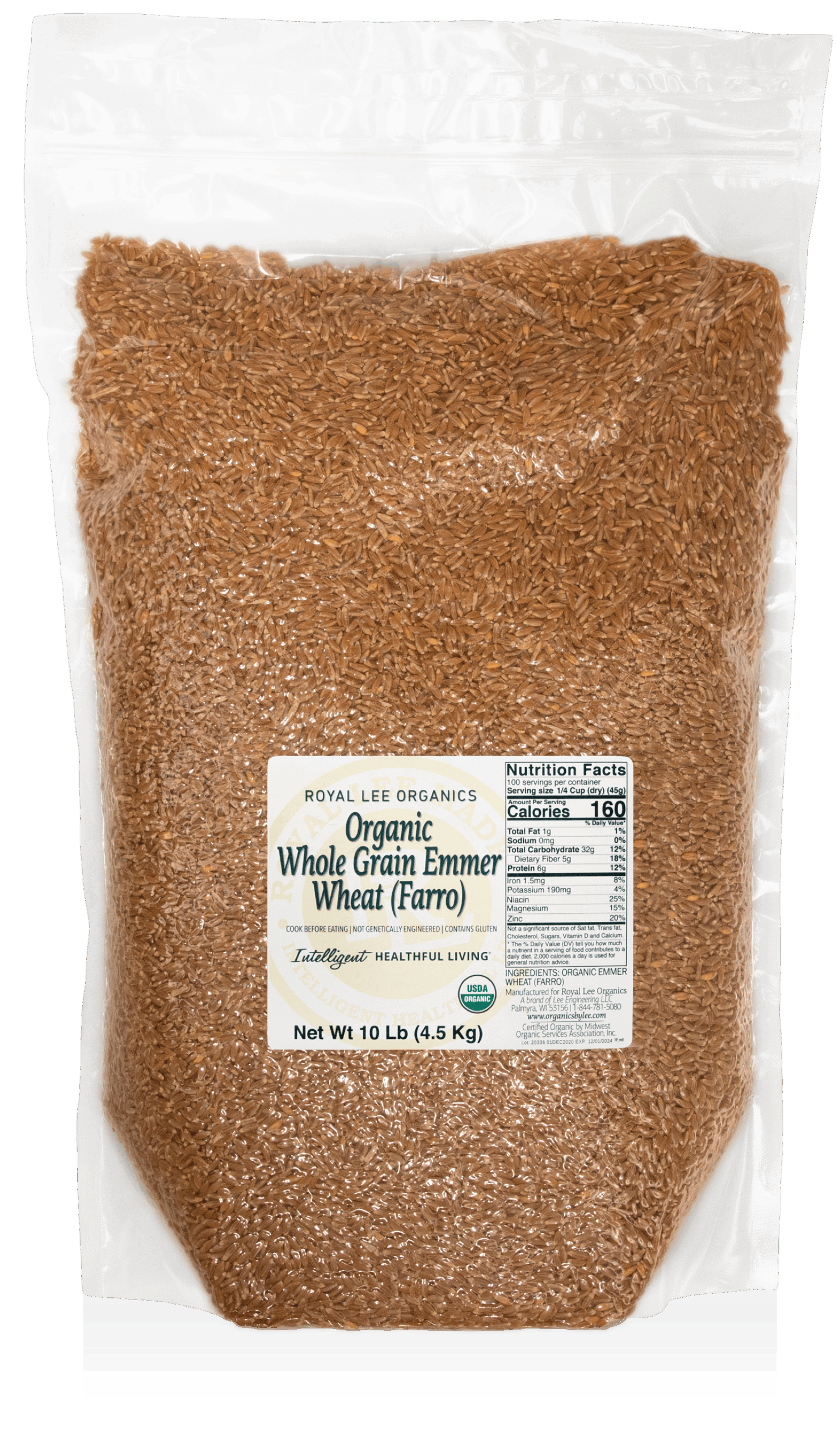 Our certified organic Emmer (also known as Farro) has a sweet, nutty flavor, making it an excellent side dish or ingredient in salads or soups.