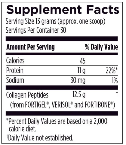 Whole Body Collagen contains a unique blend of three patented collagen peptides supported by clinical research showing their efficacy for supporting collagen production, bone strength, joint health and integrity, skin elasticity and more.**
