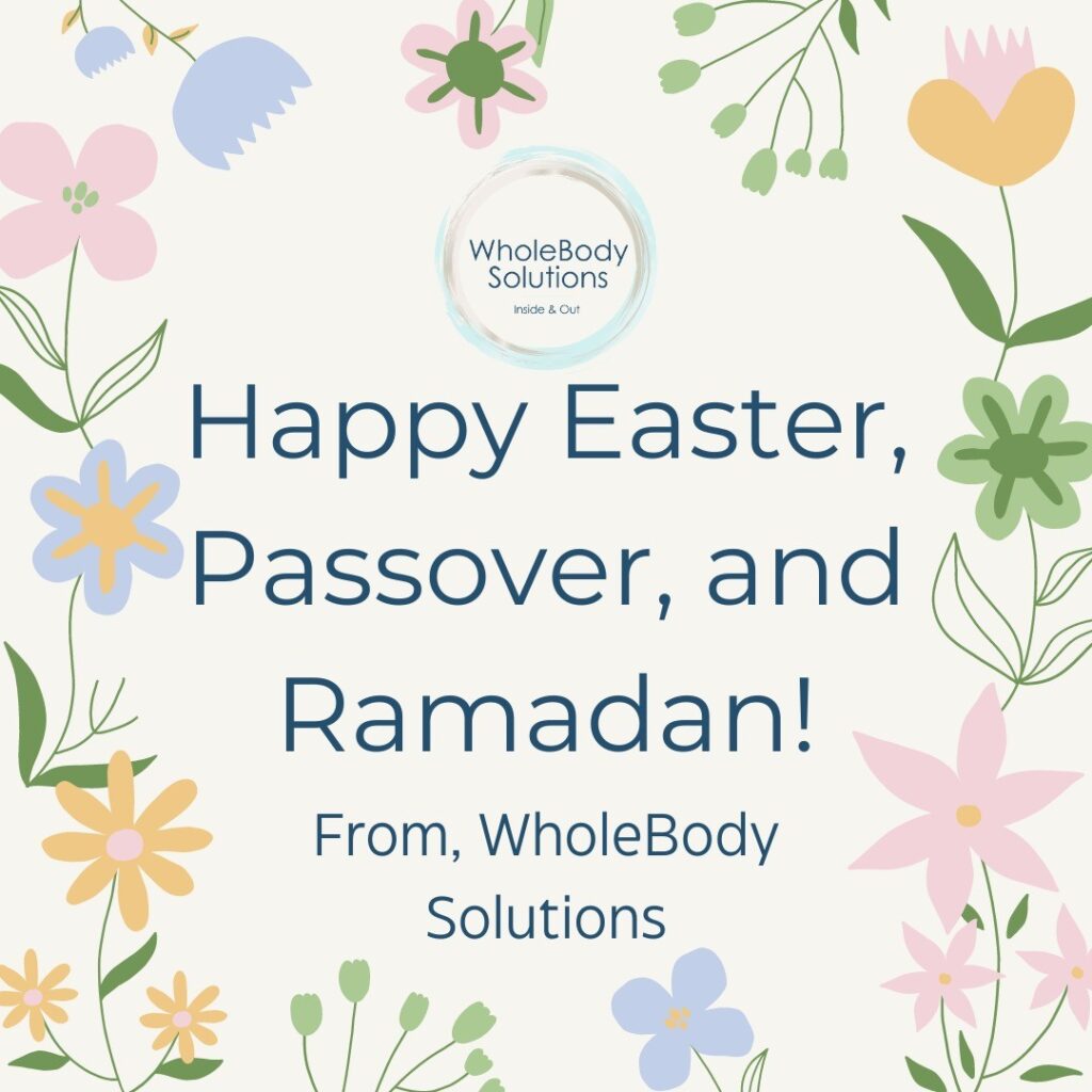 All of us at WholeBody Solutions would like to wish all of our patients and loved ones happy holidays! Whether you are celebrating a religious holiday or just enjoying the weather and spring blooms, enjoy this time of celebration! 🤍