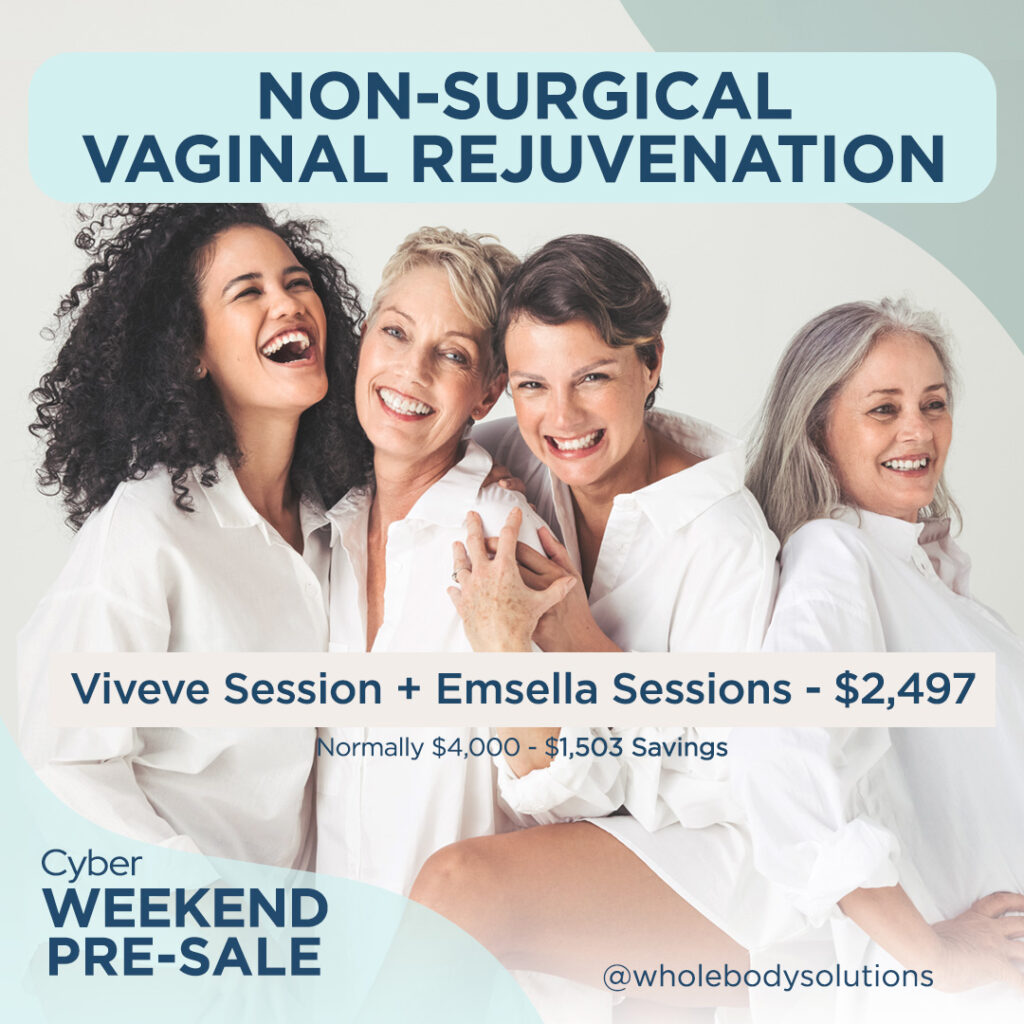 NON-SURGICAL VAGINAL REJUVENATION​​​​​​​​ Viveve + Emsella Technology​​​​​​​​ ​​​​​​​​ For optimal results, we have paired the Viveve + Emsella Technology​​​​​​​​ Viveve is a breakthrough treatment in women’s health. This non-surgical vaginal rejuvenation treatment both strengthens and tightens vaginal tissue. Moreover, the treatment is safe, fast, and virtually painless. After just one 45-minute treatment, patients experience an improvement in vaginal laxity, urinary incontinence, and dryness.​​​​​​​​ ​​​​​​​​ BTL EMSELLA stimulates the entire pelvic floor region and musculature by rehabilitating weak pelvic muscles and restoring neuromuscular control.​​​​​​​​ ​​​​​​​​ Best Results: 1 Viveve Session + 4 Emsella Sessions $2,497​​​​​​​​ Normally $4,000​​​​​​​​ $1,503 savings
