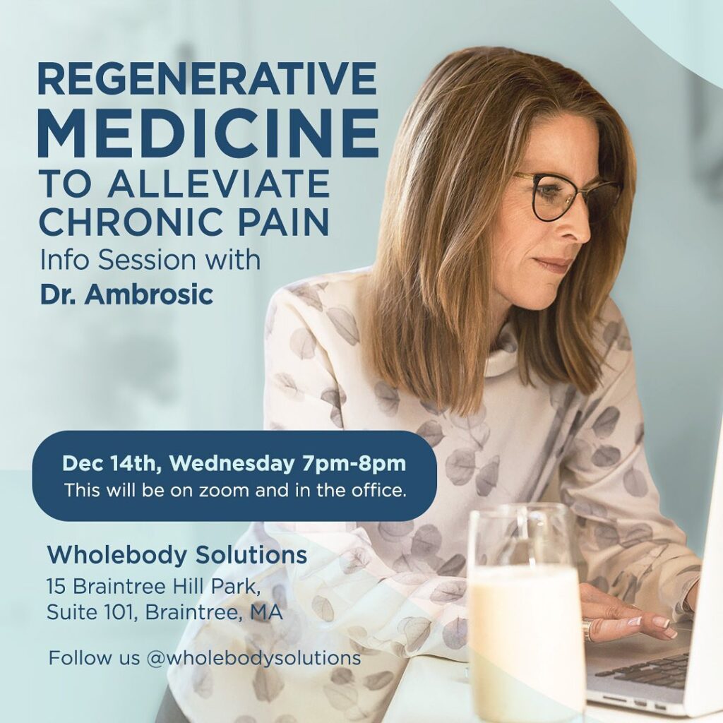 Dr. Ann has partnered with Dr. Ambrozic of Illuminare Palm Beach by incorporating cutting edge regenerative medicine to eliminate chronic pain.  Do you have pain in your joints, chronic pain or have been told that surgery may be an option?  Learn more about how non-surgical regenerative medicine can naturally heal your body.  Learn how you can supercharge your body to turn back the aging process Wednesday, December 14th on Zoom or come to the office at Wholebody Solutions to meet with Dr. Ann and view the presentation. We are so excited to share this opportunity with the WholeBody Family as we are so committed to supporting you in living a healthier and happier life. Link in bio RSVP and receive the zoom link. #regenerativemedicine #holistichealth #health #jointpain