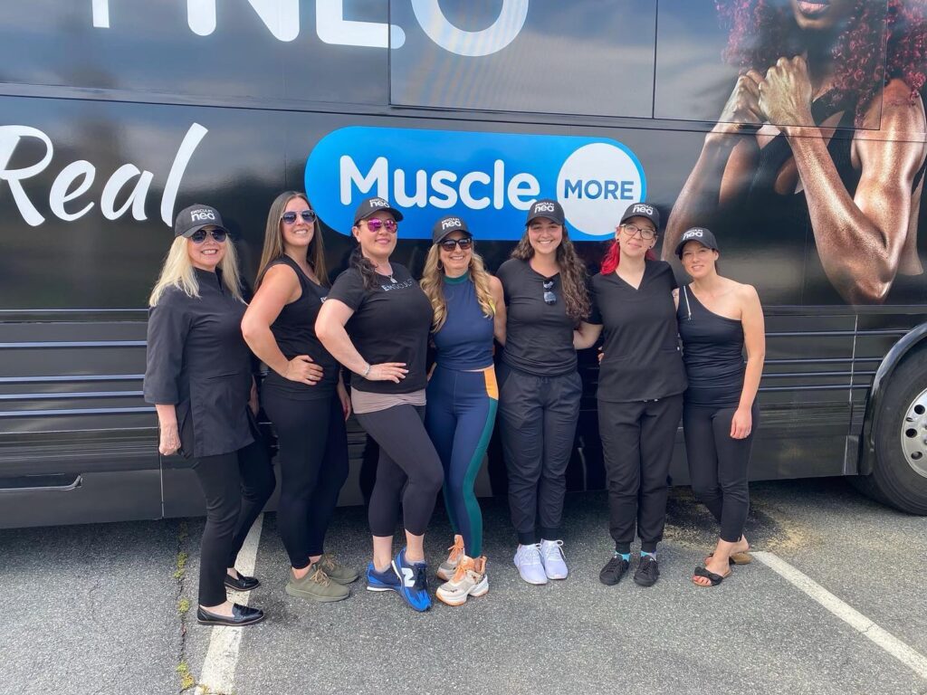 We’re getting the party started over here! Come join us on the EMSCULPT NEO bus here until 2 pm. Come out and get a free demo and take home some swag! #emsculptneo #emsculptbustour2022