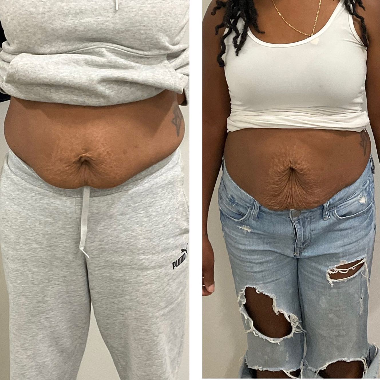 Before and after #EmsculptNeo this patient lost 3 inches off of her abdomen post-pregnancy!