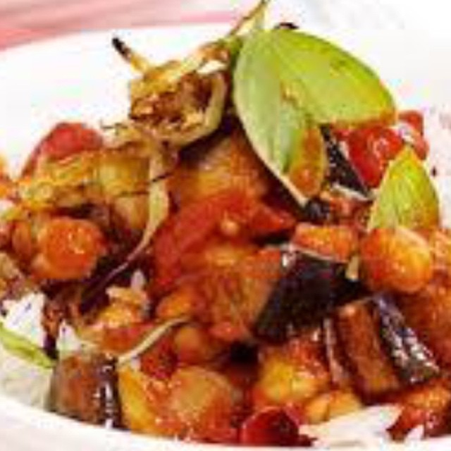 1 eggplant (about a pound) cut into small cubes. Do not peel.