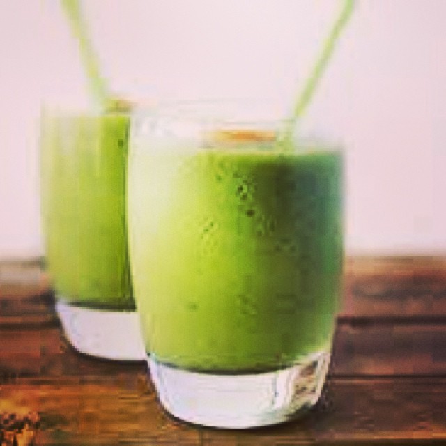 For a quick delicious smoothie packed with flavor and nutrients, just mix an organic banana (frozen is the best) with 3 organic pitted dates, a bunch of kale, 1 cup of almond milk, 1 teaspoon of raw honey, 1 tablespoon of chia seeds and a pinch of nutmeg! Enjoy!