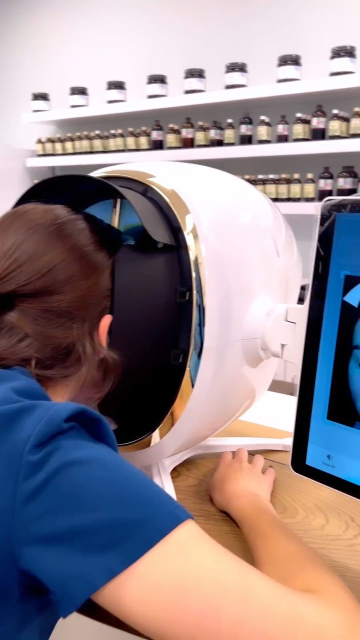 Introducing Artificial Intelligence powered Reveal Facial Scanner  This technology captures your skin in HD, using 8 light sources for a detailed analysis, from UV to red light.  Harnessing spectral imaging, deep learning AI, and 3D skin simulation, it checks 14 skin health indicators. Dive into the 5 dimensions of the skin – sebum, pores, pigmentation, wrinkles, and acne – for a thorough skin check Get tailored insights and solutions based on your unique skin profile.