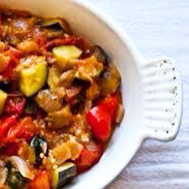 Heat oil in skillet over med/high heat and add onion. I like cooking the onion a while until it is nice and sweet and browned. Stir in everything else (except the herbs and spices) and toss until bubbly. Reduce heat and cover. Simmer about 40 minutes until vegetables are cooked through. Toss in the salt and pepper and fresh herbs. Taste and adjust seasonings. (I usually use a teaspoon or more of sea salt and 2 teaspoons of the Herbamare if using that. It is up to you. Summer uncovered a few more minutes to let flavors and spices mingle. Serve hot, warm, or cold! ENJOY! :)