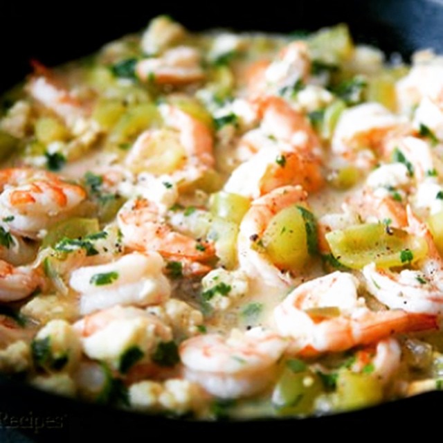 3 Add the cheese and shrimp. Cook in a preheated 425°F oven for 10 minutes.