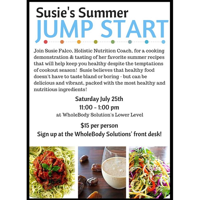 Sign up today and register for Susie’s cooking demonstration! Those who wish to attend must sign up and pre pay $15! Don’t miss your chance to learn some great new recipes!