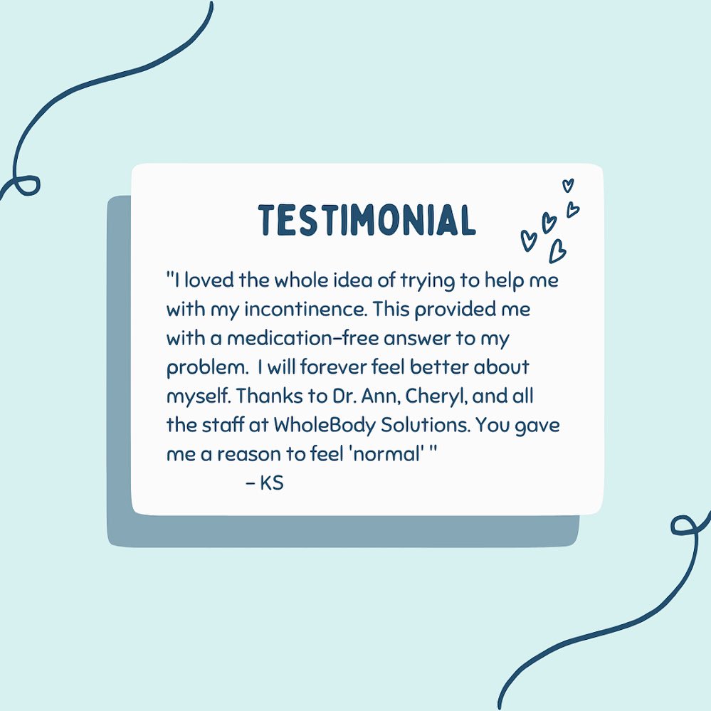 We are so lucky to have such amazing patients! 🩵🩵🩵 • • • #TestimonialTuesday #EmsellaChair #Incontinence #WholebodySolutions #Braintree #Boston #InsideAndOut #Aesthetics #HolisticHealth #Healing #Acupuncture #BrainIntegration #Chiropractor #NonSurgicalTummyTuck #MedSpa #EmSculptNEO #Beauty #Confidence #AMP  #Skin #Exfoliate #Moisturize #Hydrate #AntiAging #SkinTone  • • Wholebody Solutions 15 Braintree Hill Office Park, Suite 101 Braintree, MA, 02184 617-328-6300